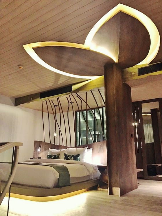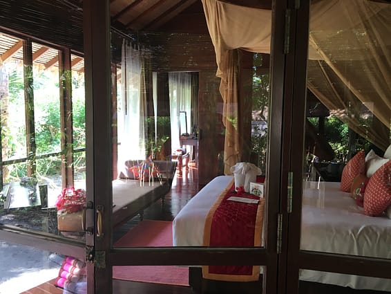 En Thaïlande, pierres de lave, couleurs vives et bois foncé exotique sont au coeur de la déco.