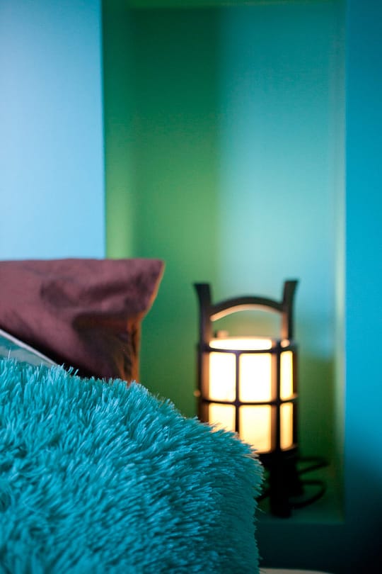 2 nuances de bleus polaires s’invitent dans les niches pour souligner l’espace de chacun.